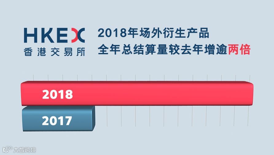 香港交易所的场外衍生产品结算所OTC Clear (场外结算公司) 在2018年的业务繁忙,不同产品的结算量均见上升,全年总结算量较去年增逾两倍。
