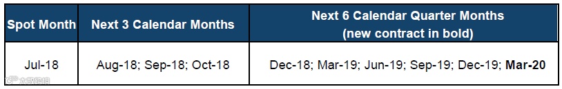 Contract months from 19 June 2018 (day session)