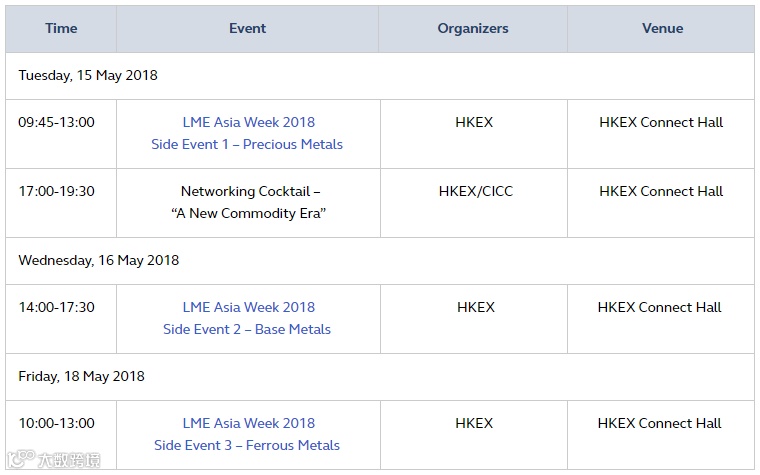 In addition to the LME Asia Week 2018 Metals Seminar, three side events and a networking cocktail will be held at HKEX Connect Hall to provide an in-depth market outlook on precious metals, non-ferrous and ferrous metals. Please note that the side events are only available to delegates who possess the full LME Asia Metals Seminar tickets, so get yours today!