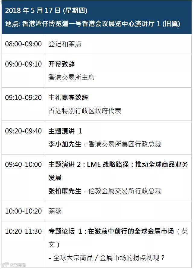 金属研讨会的日程将不时更新。年度盛事一票难求,请立即点击左下角“阅读原文”报名。更多查询请联络info@lmeasiaweek.com。