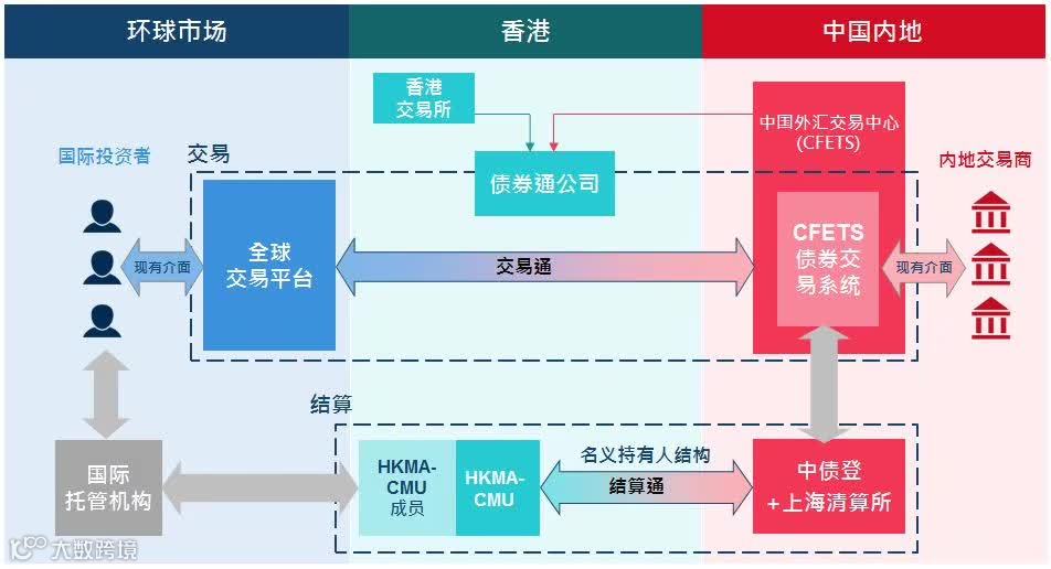在交易前的市场准入环节,境外机构可利用境外的基础设施,“一点接入”境内债券市场,境外投资者并不需要开设境内的结算、托管账户,也不需要在市场准入、交易资格等环节与境内主管部门直接接触,而是完全可以利用其在香港已经开设的现有账户直接接入内地债券市场,保证了从交易流程一开始就沿用其已经熟悉的国际法则和交易惯例,利用境外的金融基础设施来完成市场准入和备案流程,而不必重新熟悉与其长期交易结算习惯不同的中国内地市场运行惯例。