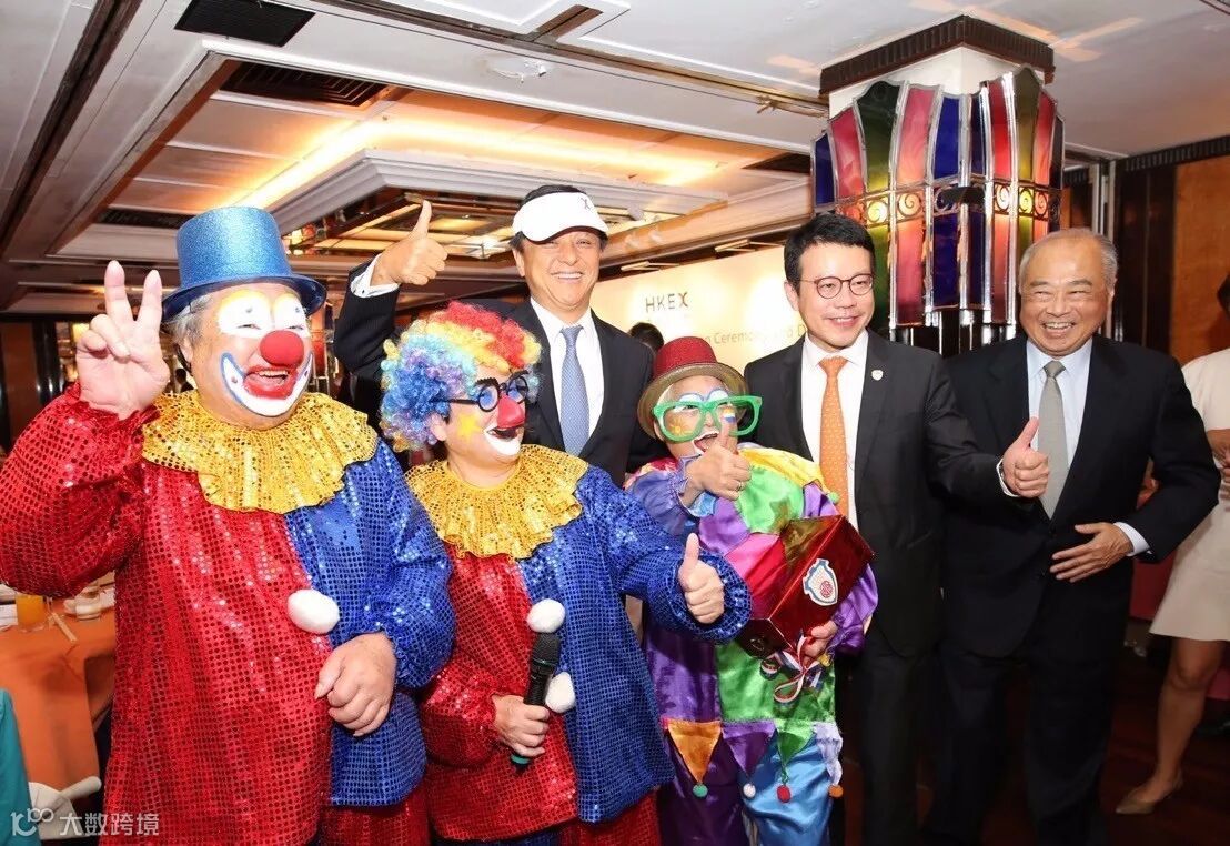 保良局旗下的老人们在魔术表演后,与香港交易所主席周松岗(后右一)、集团行政总裁李小加(后左一)和保良局行政总监陈钦勉(后中)合影留念。