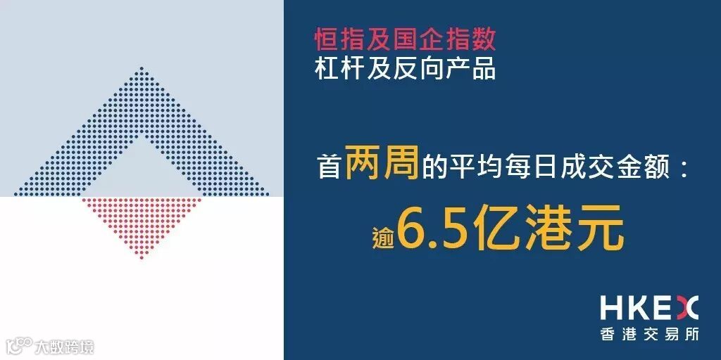 市场对恒指及国指杠杆及反向产品反应良好,首两周平均每日成交额超过6.5亿港元。其中逾六成的成交来自杠杆产品,恒指及国指的杠杆及反向产品成交则分布大致平均,分别各占45%及55%。