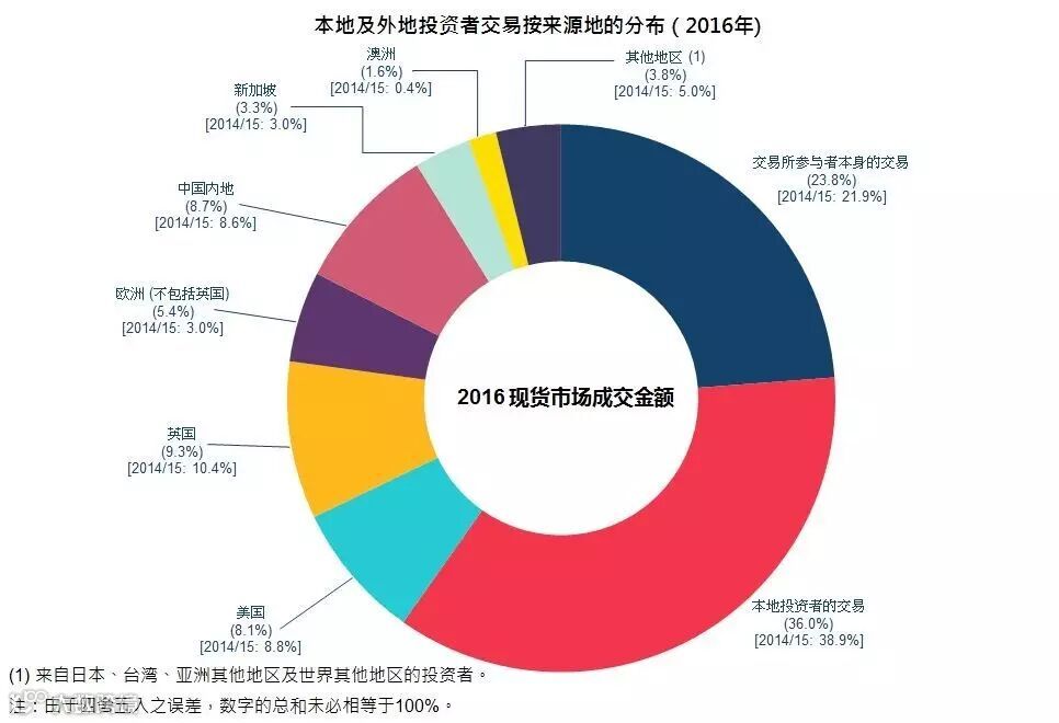 外地投资者的交易占市场总成交金额的比重为40%,与2014/15年的39%水平相近,香港本地投资者的交易占市场总成交金额的比重则降至36%(2014/15年度为39%)。
