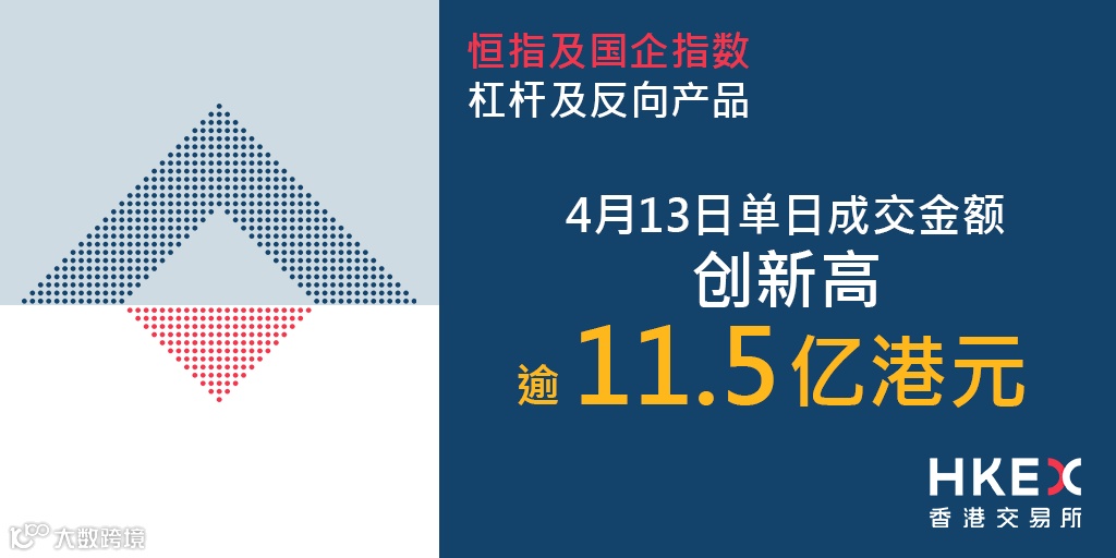 虽是香港复活节假期前夕,本周香港证券市场只交易四日,恒指及国企指数杠杆及反向产品交易持续活跃,周二(4月11日)成交达8.63亿港元,今日则更上一层楼。