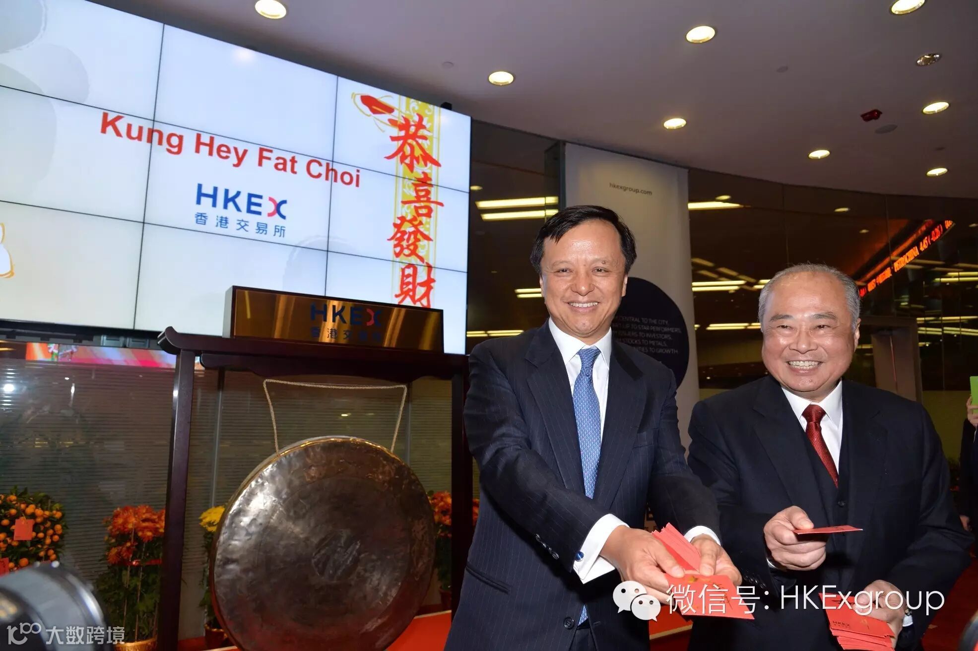 The Secretary for Financial Services and the Treasury Professor K C Chan, HKEX Chairman C K Chow and Chief Executive Charles Li hosted a ceremony to mark the first trading day of the Year of the Monkey.
