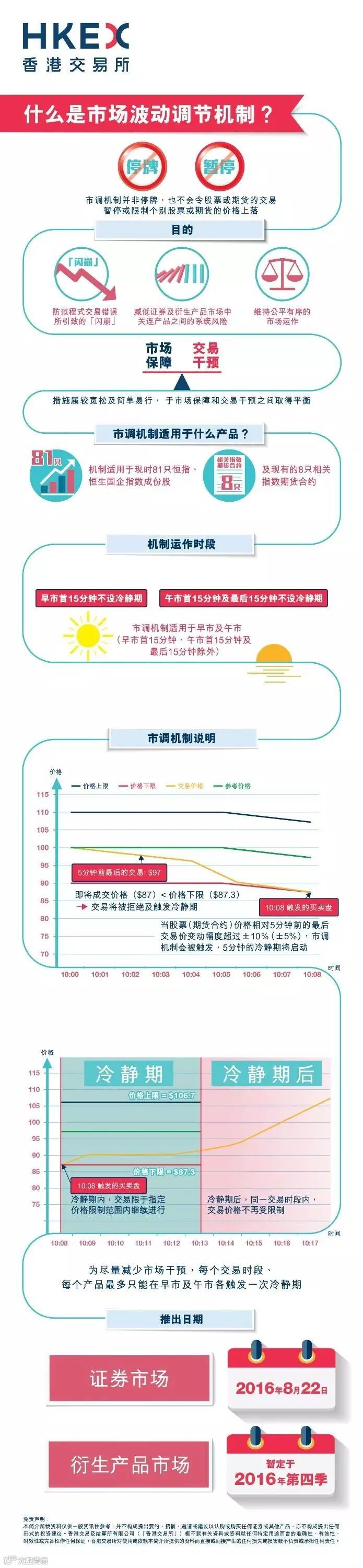 香港交易所将于8月22日(星期一)推出港股的市场波动调节机制,该机制模式简单易行,防止因重大交易错误或其他异常事件而引发的极端价格波动,维护市场的正常秩序, 从而实现在保障投资者的同时尽量减少对市场的干预。