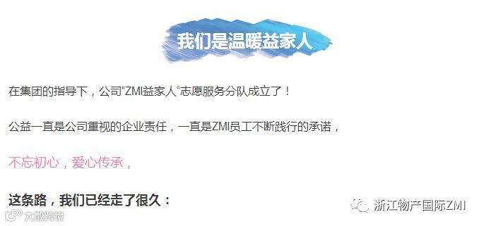 导读:集团“物产中大蓝天使”志愿服务队已正式成立,物产国际“ZMI益家人”志愿者分队现正火热招募成员,期待热爱公益的你加入我们!