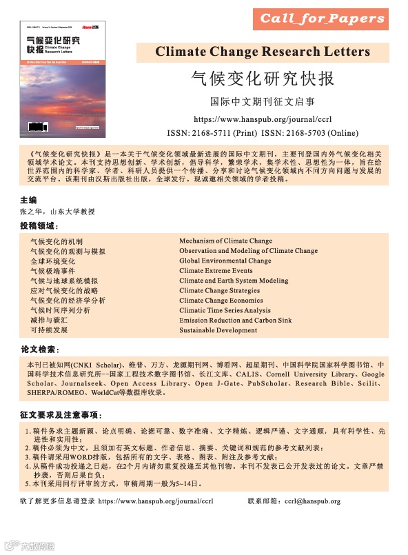 摘要:基于成都地区2014~2018年冬季14个站点气象要素数据以及同期细颗粒物(PM2.5)质量浓度,筛选了研究期间16次持续性霾天气过程,利用罗氏法计算了成都地区大气混合层高度(MLH),对该地区霾天气过程MLH的时空分布特征进行了分析。结果表明:(1) 成都地区霾天气过程平均MLH (441.89 m)总体低于冬季平均MLH (501.83 m);(2) 基于霾天气过程MLH,利用K-Means聚类方法将成都地区分为I区、II区和III区,三个区域对应的平均MLH分别为480.31 m、419.70 m和394.89 m;(3) 随着霾强度由轻微霾到重度霾的渐进演化,MLH均呈现出递减的变化趋势,I区、II区和III区MLH与PM2.5浓度的相关系数(R)分别为−0.24、−0.15和−0.14 (均通过了α = 0.05的显著性检验)。