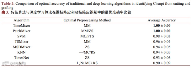 在汉斯出版社《光电子》期刊上,有文章比较了三种传统机器学习算法(支持向量机(SVM)、随机森林(RF)和K近邻(KNN))和五种前沿的时间序列深度学习算法(TSMixer、MSDMixer、TimesNet、PatchMixer和TimeMixer)在基于近红外光谱数据区分圈枝陈皮和驳枝陈皮方面的性能。同时,本研究选取了最小最大归一化等多种数据预处理方法,深入探讨了不同预处理方法对各种算法性能的影响。