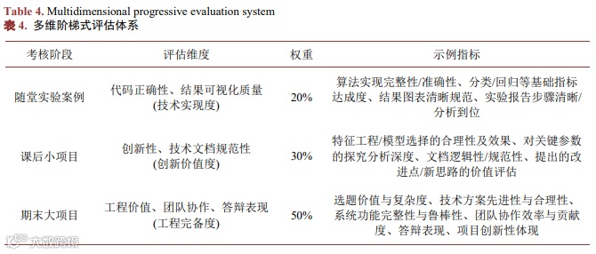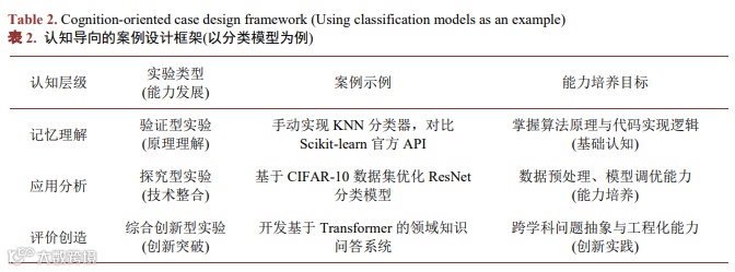 在大模型技术快速发展的背景下,传统机器学习实验教学存在内容滞后、与前沿技术脱节、评价体系单一等问题。研究提出一种“知识贯通–能力递进–评价多维”的递进式实验教学方案,以布鲁姆认知模型为框架构建递进式知识体系、设计认知导向与领域驱动的实验案例库、创新三阶闭环实验教学模式,并建立多维阶梯式评估机制。该方案通过调整认知层级与新技术的要求,帮助学生从理解算法到进行系统创新的能力全方位提升,有效提升学生解决复杂工程问题的能力和教学质量,为培养适应人工智能时代变化需求的高质量人才提供有效方法。