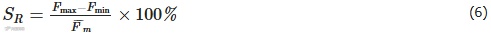 式中:SR——泵流量稳定性,%;Fmax——同一设定流量3次测量值的最大值,mL/min;Fmin——同一设定流量3次测量值的最小值,mL/min。