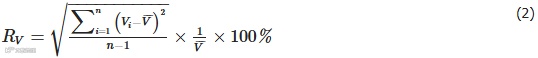 式中:Rv——加液体积重复性,%;V¯¯——6次加液体积测量结果平均值,μL;n——测量次数,n=6。