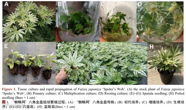 在汉斯出版社《植物学研究》期刊上,有研究从组培繁殖的五个主要方面(母株年龄、激素浓度、光照强度、培养温度、移栽基质配比),总结了‘蜘蛛网’八角金盘在组培生产过程中,保持锦化稳定性的关键技术要点,研究结果可为‘蜘蛛网’八角金盘及其它锦化植物的繁殖提供借鉴。