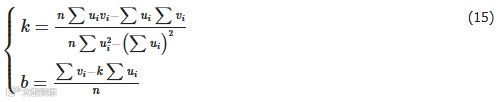 式中,斜率k和截距b为理想直线的优化参数。