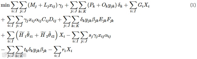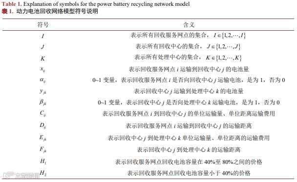 其次考虑动力电池回收网络以环境影响成本最小为优化目标的模型,如公式(2)所示。