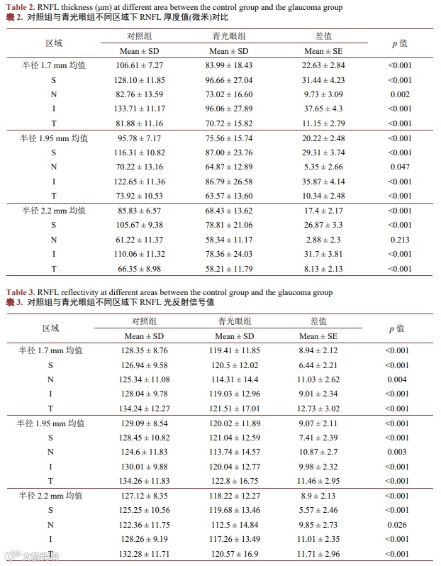 青光眼对不同区域视网膜神经纤维层厚度与光反射信号的影响研究