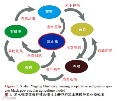 2020年以来,在GEF-6项目支持与指导下,浠水县郁港蓝莓种植合作社,构建了以大别山黑山羊土著种保护为纽带的参与式种养循环生态农业新模式,主要包括大别山黑山羊基因资源保护、“果–草–羊”模式构建、技术标准化、生态科普宣传、赠羊、赛羊活动等重点环节。该种养生态循环模式是以羊的粪尿综合利用为核心,种植业的农产品或废弃物作为养羊的饲料,养羊废弃物作为水果有机肥料,并提供优质农产品。形成了种植、养殖、生态等多要素构成的多层复合循环模式,该模式注重系统内资源的综合利用和产业链接,突出模式的经济效益,同时也实现环境的保护。