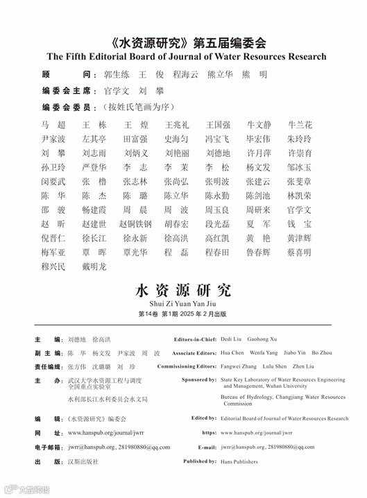 《水资源研究》是一本开放获取、关注水资源领域最新进展的国际中文期刊,以传播和展示世界水文水资源研究领域最新成果、推进中国水文水资源研究走向国际为宗旨,着重介绍水文科学,水资源开发利用,水环境保护的理论方法、技术经验和应用成果以及水文水资源研究新的发展方向和具有前瞻性的水战略性问题,为广大水文水资源研究者及相关技术人员提供一个免费传播,交流的平台,为社会各阶层推介有价值的水文水资源信息。