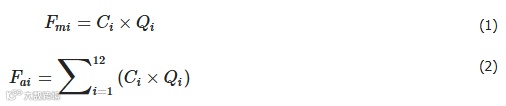 式中:Fmi 为河流断面月度通量(104 t),Fai 为年度通量(104 t),Ci 为第i个月的污染物浓度值(mg/L);Qi 为第i个月的月径流量(108 m3)。
