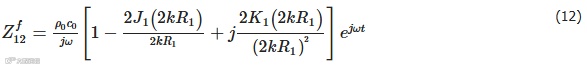 式中,R1为弹性板内径,k为波数,J1为一阶贝塞尔函数,K1为一阶修正贝塞尔函数,本文算例中管口外部的流体区域为轻流体,ρ0和c0分别为空气密度和空气中声速。