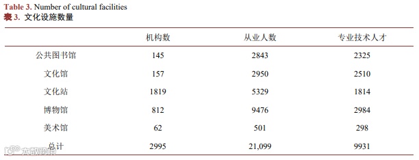 各类文化机构在数量和人力资源上差异明显,见表3。由图2可知,收入决算财政拨款收入占比94%,本年收入、事业收入和上级补助收入一共占6%。文化收入大部分来自财政破款。