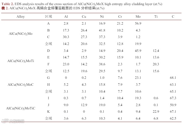 Ti和C元素对AlCu(NiCr)2Mo高熵合金熔覆层组织与性能的影响