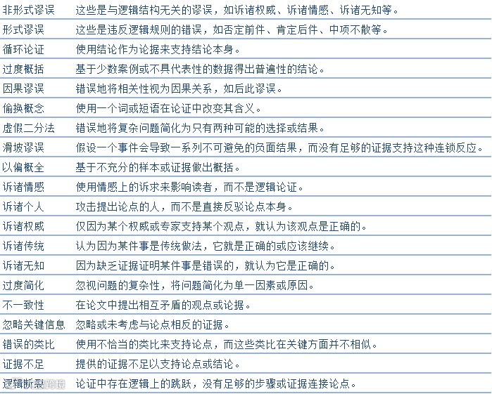 论文中出现逻辑错误会影响论文的说服力和可信度,以下是一些常见的逻辑错误: