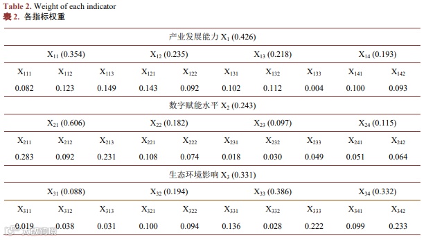 根据公式对数据进行极差标准化,再求得各级指标的合成权重,得到各指标的权重如表 2 所示。