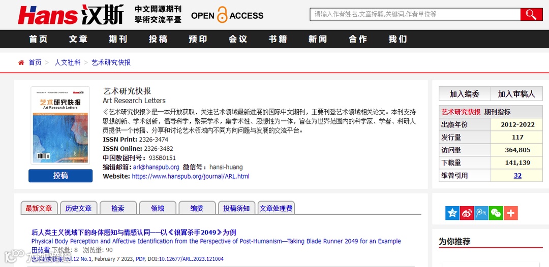 《艺术研究快报》期刊论文已被以下数据库收录: