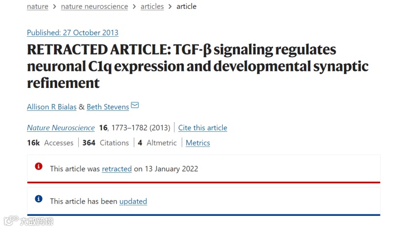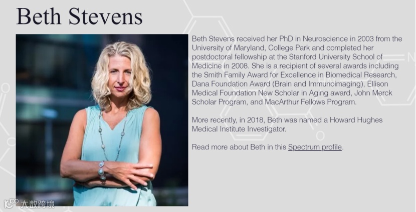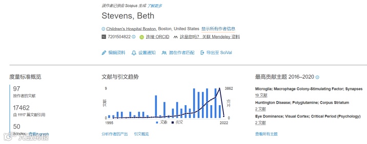 哈佛医学院Beth Stevens副教授发表论文近百篇,共计引用次数过万。2013年,Beth Stevens在Nature Neuroscience(IF 25.884)发表了论文TGF-β signaling regulates neuronal C1q expression and developmental synaptic refinement,据谷歌学术数据统计,该论文已被引用532次。