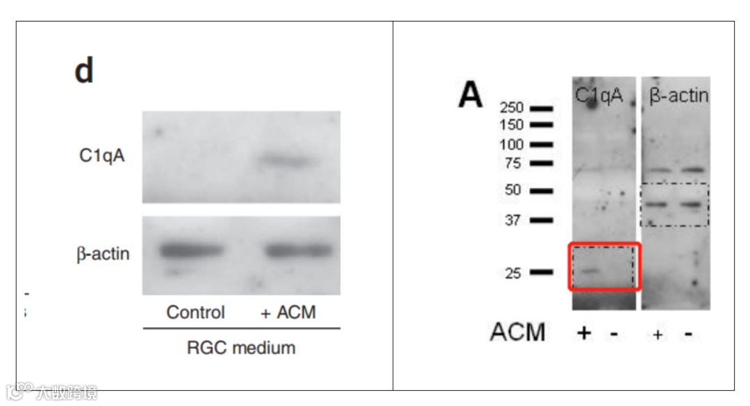 Figure 1D. C1qA条带左上角有一个小点,但是原始数据中整个条带并没有发现这个小点。