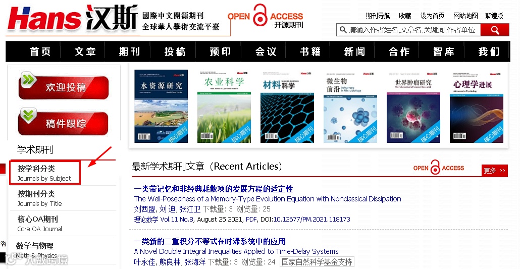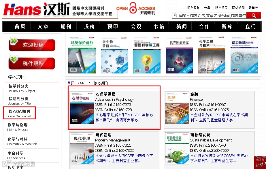 二、如何找到汉斯出版社的核心期刊