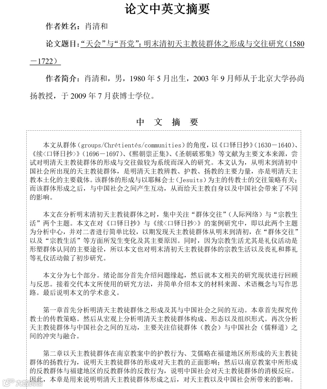 肖清和,2003年毕业于北京大学哲学系,获学士学位;2006年参加北京大学与香港中文大学联合博士培养计划,2009年分别获得北京大学与香港中文大学哲学博士学位,博士论文获香港中文大学宗教与中国社会研究中心“宗教与中国社会”研究博士论文奖(第四届)以及全国百篇优秀博士论文奖(2011年度)。