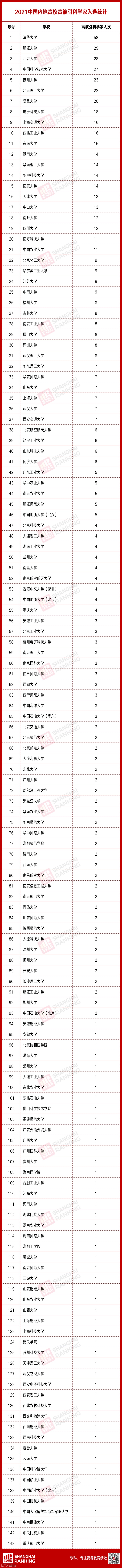 2021中国内地高校高被引科学家入选统计(按第一机构)如下: