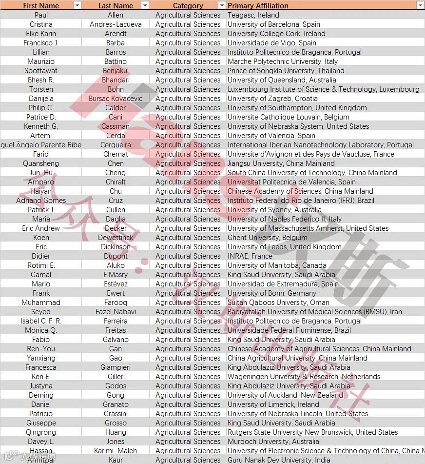 以下为2021中国内地高校(第一机构)高被引科学家名单(部分):