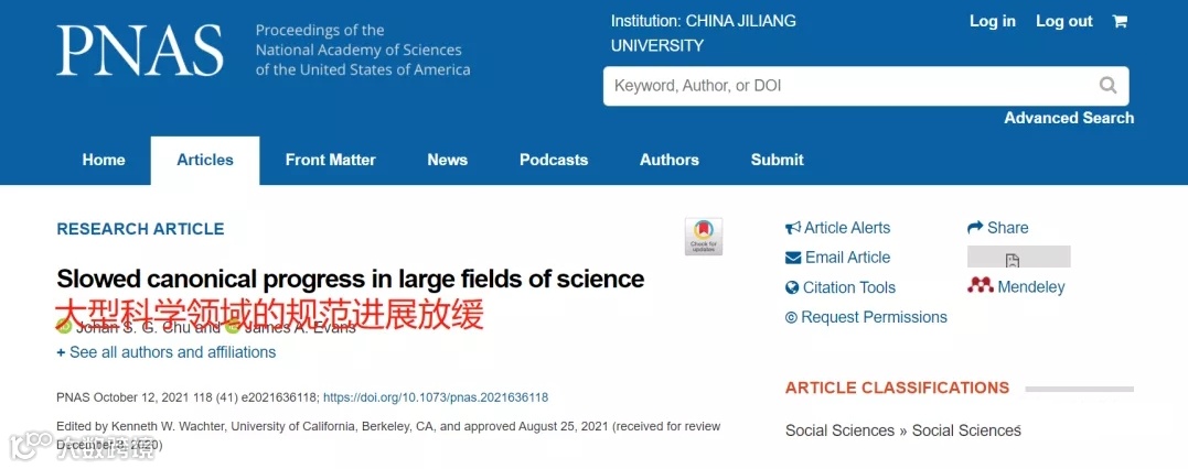 PNAS(美国科学院院报)近期刊发了一篇文章,研究了241个学科9000万篇论文的18亿次引用数据,发现大规模的论文发表不会导致某个领域的中心思想更替,而是会导致经典思想范式的僵化。