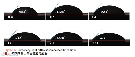 1)6种不同质量比复合膜液与PVC复合板间形成的接触角大小差异较小,揭膜难易程度均较易。
