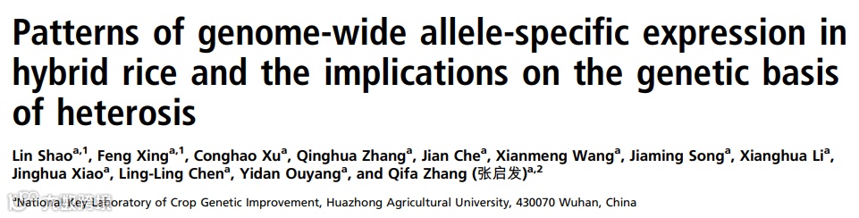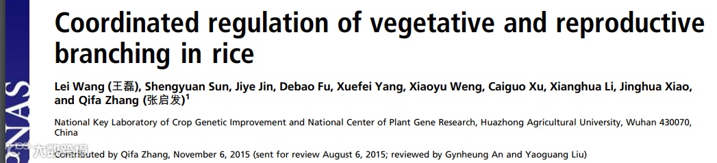 据最新报道称,自2015年起,中国科学院院士、华中农业大学教授张启发带领的研究组,发在美国《国家科学院院刊》(PNAS)上的7篇论文都带有中文署名。