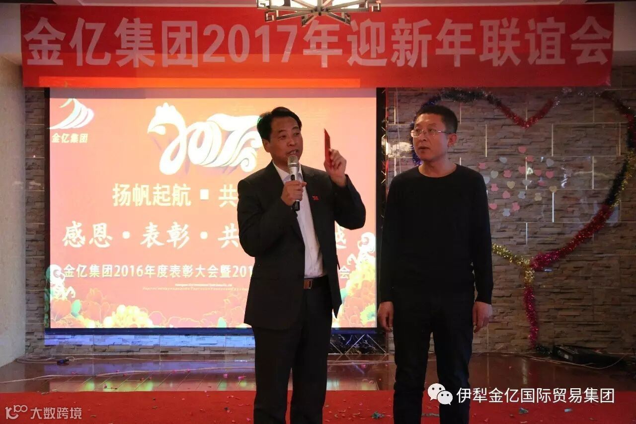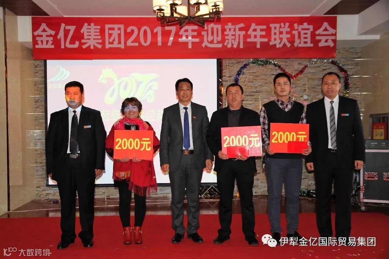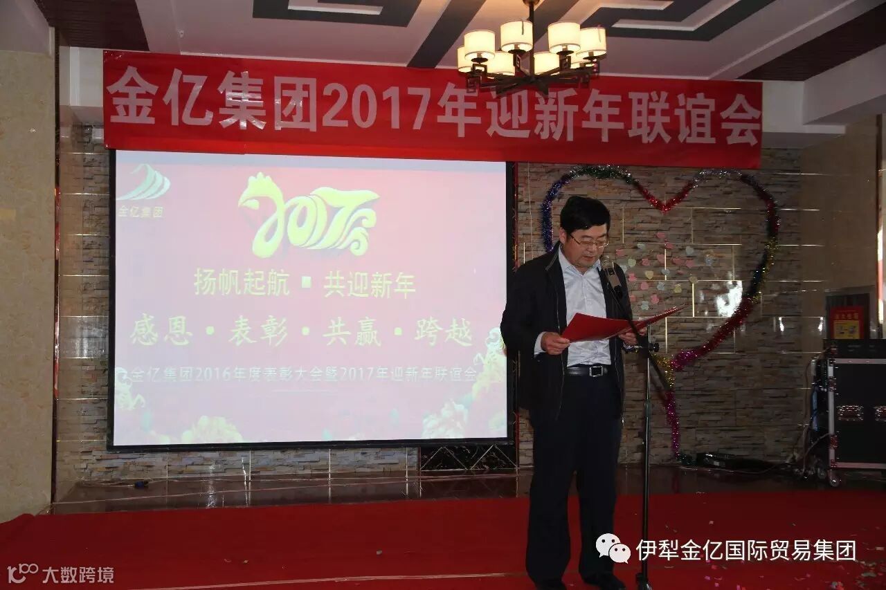2017年1月15日,值此2017年春节来临之际,霍尔果斯金亿国际贸易(集团)有限公司全体员工欢聚一堂,隆重的举行“金亿集团2016年度表彰大会暨2017年迎新年联谊会”,我们在这里喜迎昨日的辉煌业绩,展望公司的美好未来!