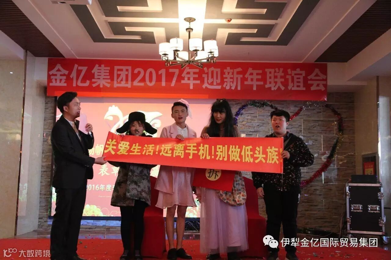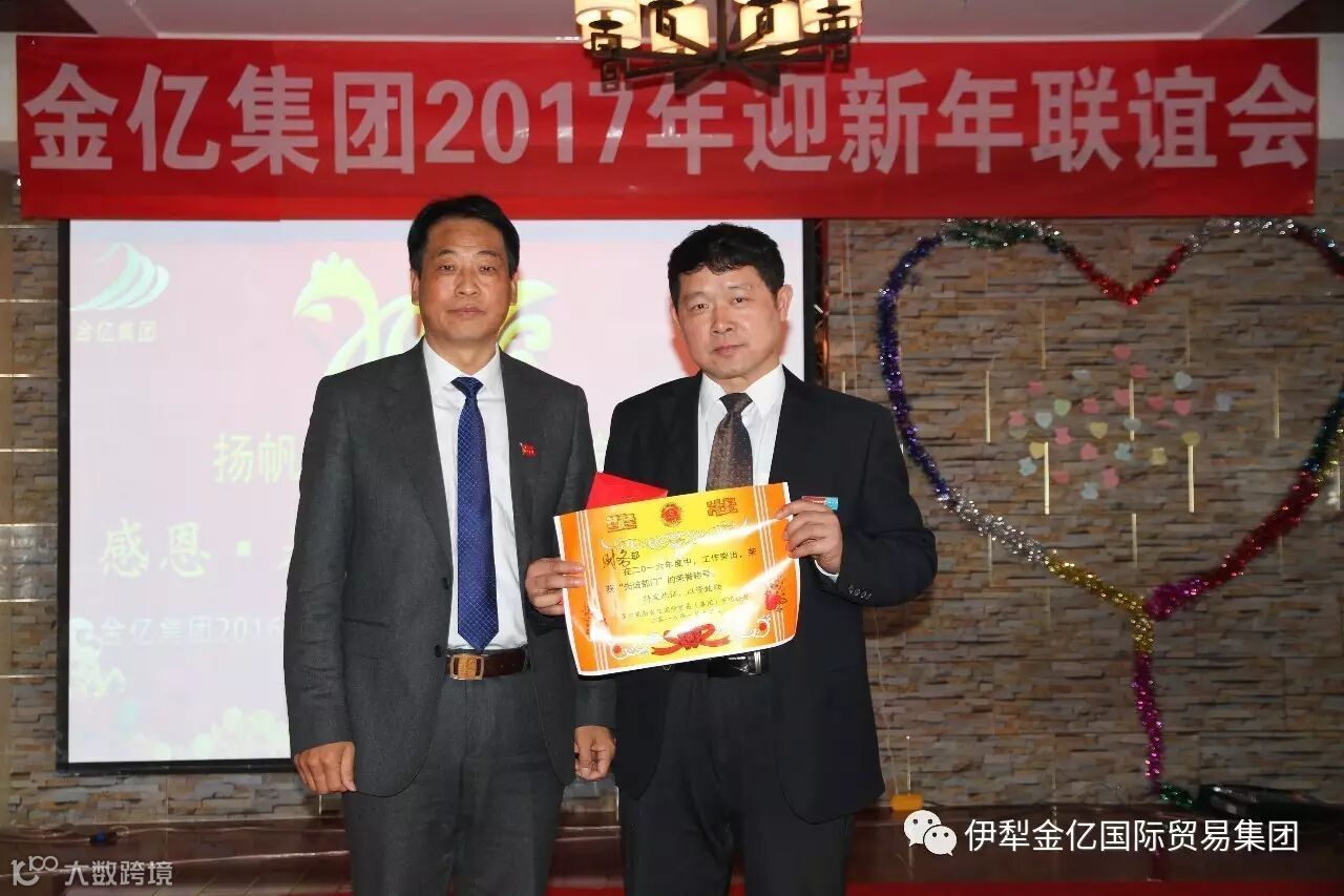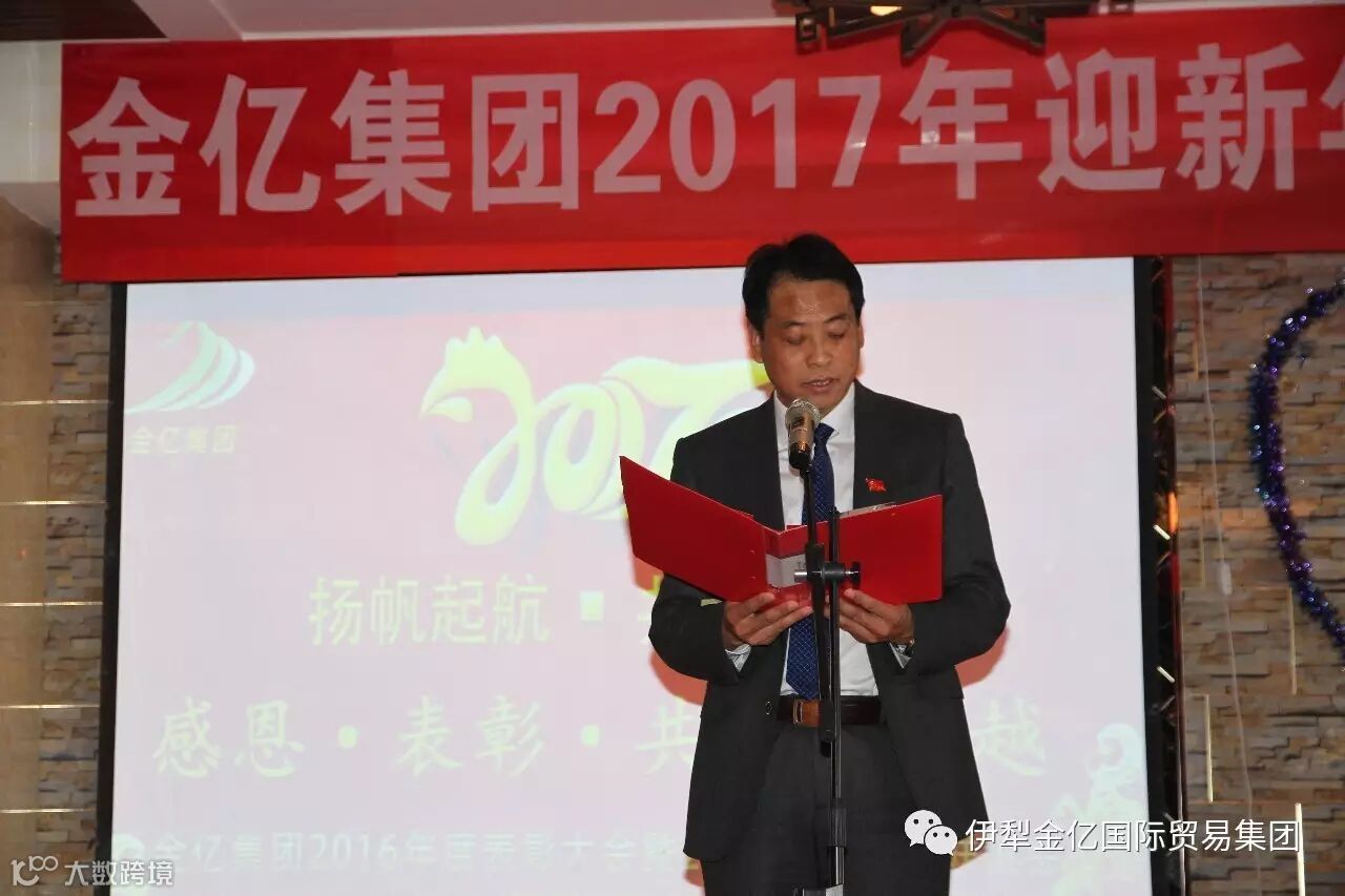 2017年1月15日,值此2017年春节来临之际,霍尔果斯金亿国际贸易(集团)有限公司全体员工欢聚一堂,隆重的举行“金亿集团2016年度表彰大会暨2017年迎新年联谊会”,我们在这里喜迎昨日的辉煌业绩,展望公司的美好未来!