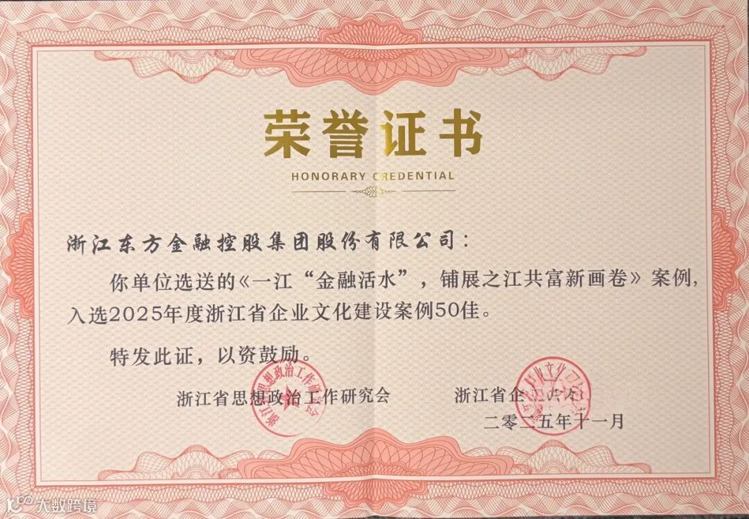 11月6日,由中共浙江省委宣传部主办的“乘风破浪立潮头 文化铸魂谱新篇”企业文化建设案例展示交流活动在杭州举行。省国贸集团下属浙江东方申报的《一江“金融活水”,铺展之江共富新画卷》成功入选2025年度浙江省企业文化建设案例50佳并收录于《企业之魂》一书。