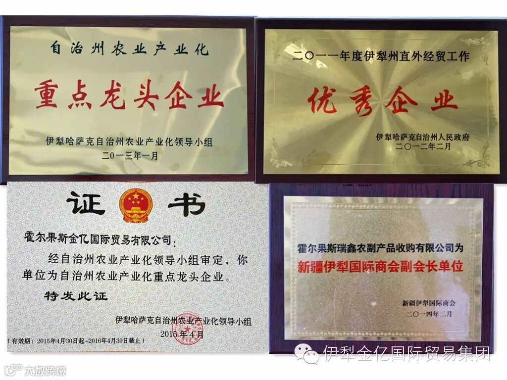 公司拥有正式员工50余人,其中本科学历8人,专科学历38人,各类专业技术人员及业务人员4人,企业管理人员90%是专科以上学历。临时用工每天达200人。2015年集团公司出口果蔬超80000吨,约1亿美元。占霍尔果斯口岸果蔬出口量的52.8%,并且销售收入逐年增加。金亿集团多次受到新疆维吾尔自治区、伊犁哈萨克自治州及霍尔果斯市政府的表彰,现已荣获“伊犁哈萨克自治州农业产业化重点龙头企业”和“伊犁哈萨克自治州直外经贸工作优秀企业”等多项荣誉。
