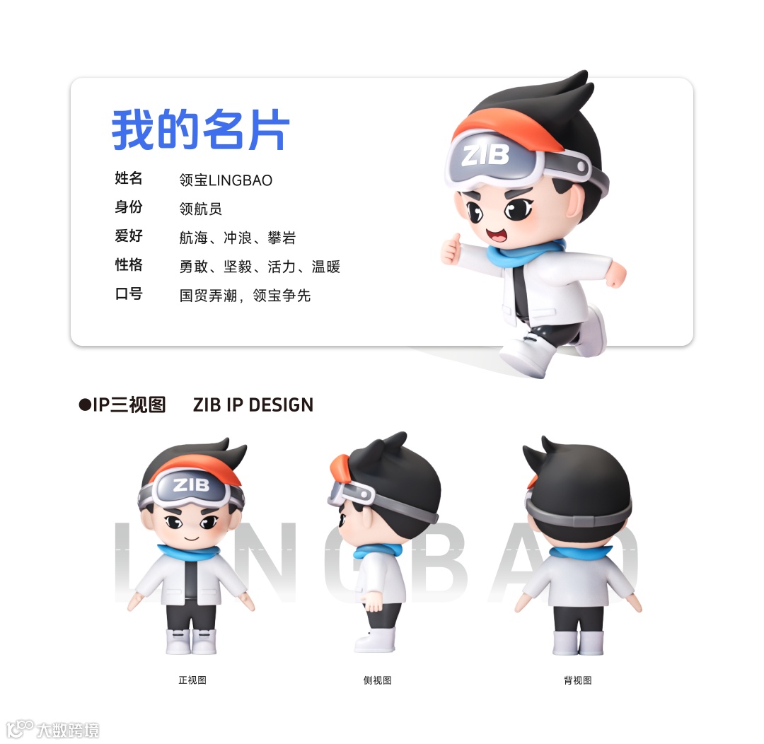 弄潮新时代,打响新风尚。领宝不仅是国贸企业文化的形象代表,更是浙江国资国企新风尚的生动诠释,充分体现了国贸集团将“忠诚、担当、奋斗、创新、清正”融入一流企业建设和一流文化锻造。它巧妙地将“国贸红”与蓝色领巾相结合,传递出国贸人勇立潮头、积极向上的精神面貌。一抹红色象征着旭日东升、朝气蓬勃,寓意着国贸人始终坚守初心,争当“红色根脉”守护者;蓝色领巾则代表着融通四海、海纳百川,展现了国贸人追求卓越,争做现代化国企“排头兵”。还有它那浪潮般的发型和独特的智能眼镜,彰显着时尚与潮流的气息,体现了国贸人敢为人先、敢于挑战的弄潮姿态。