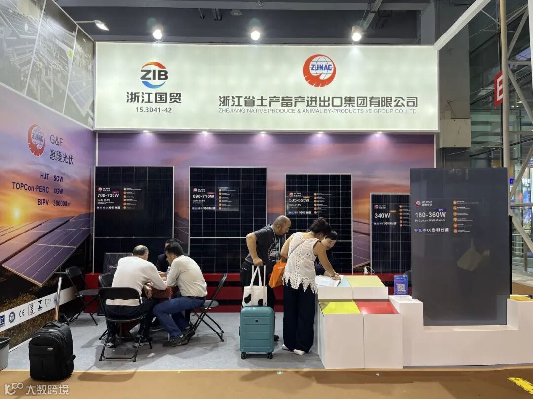 浙江土畜展出历时两年研发的新品——BIPV光伏幕墙产品,一举“出圈”成为“爆款”。该产品能够替代建筑物的玻璃幕墙,低碳环保、美观可定制,也符合现代建筑对于阳光房的需求。沿着“科工贸”一体的思路,敏锐布局光伏市场,如今在土畜的产品册上,从最传统的Perc电池到HJT等新技术产品应有尽有。