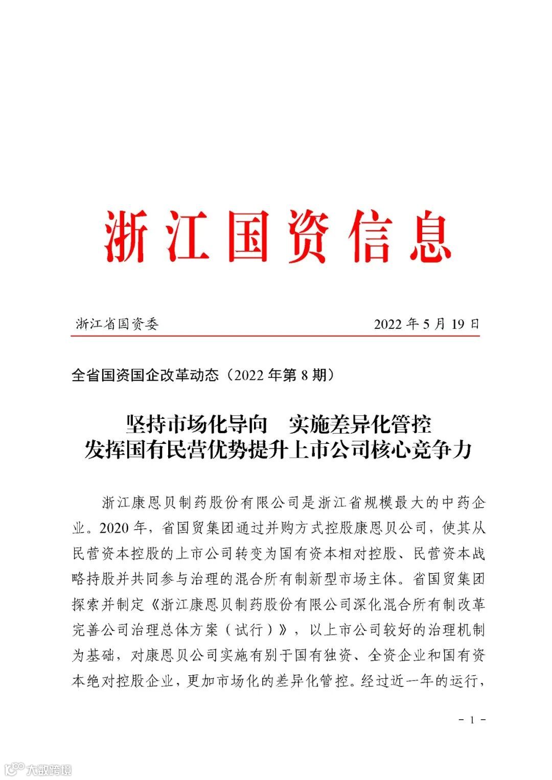 2022年上半年,康恩贝股份公司面对疫情多点爆发、行业政策持续加码、原材料成本攀升等诸多挑战,上下一心、迎难而上,围绕省国贸集团生命健康板块发展战略,以公司“十四五”规划为指引,以“双线并举、双轮驱动”为工作主基调,坚持党建引领,加快混改推进,聚焦核心主业、聚焦资源整合、聚焦价值提升,企业发展呈现稳中有进、进中提质的良好态势。