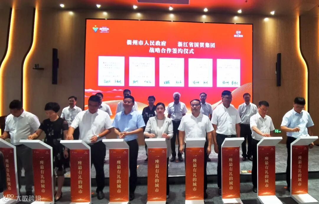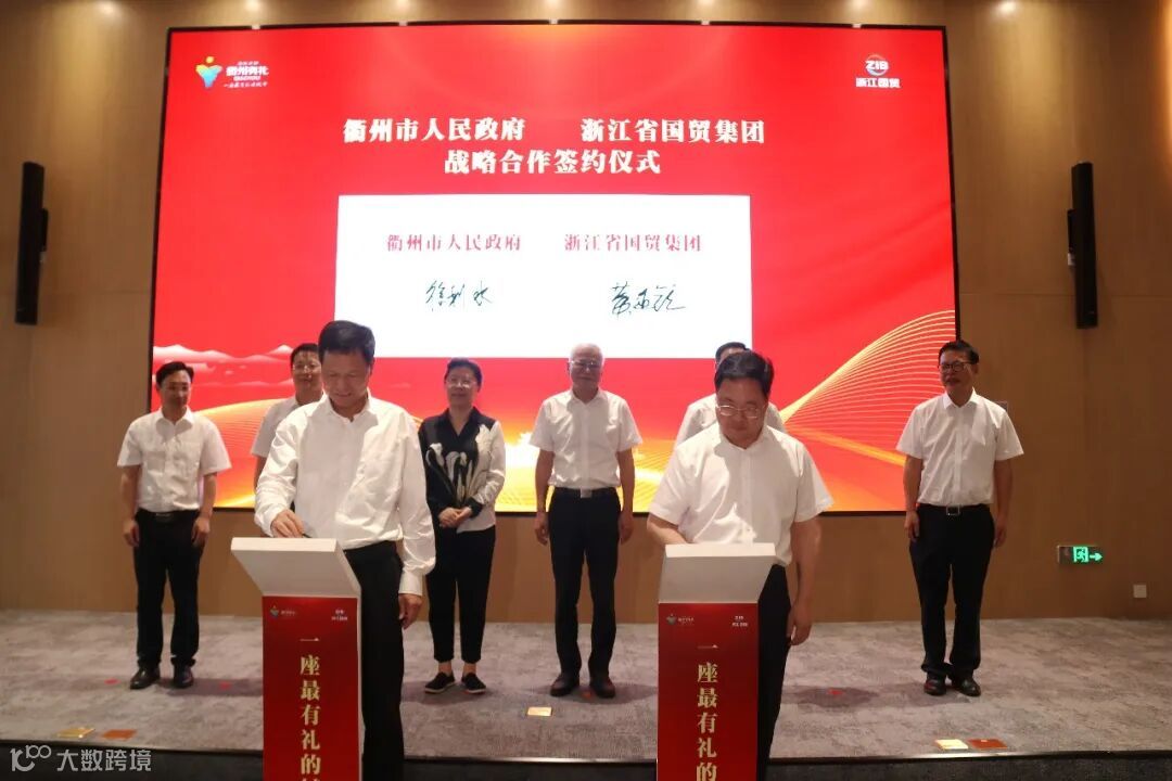 黄道领与徐利水分别代表国贸集团和衢州市政府签署战略合作协议。浙江东方与衢控集团,浙商资产与江山市政府,浙江土畜与江山市政府,省健康产业集团与常山县政府,康恩贝股份与衢州市中药材协会分别签订战略或项目合作协议。