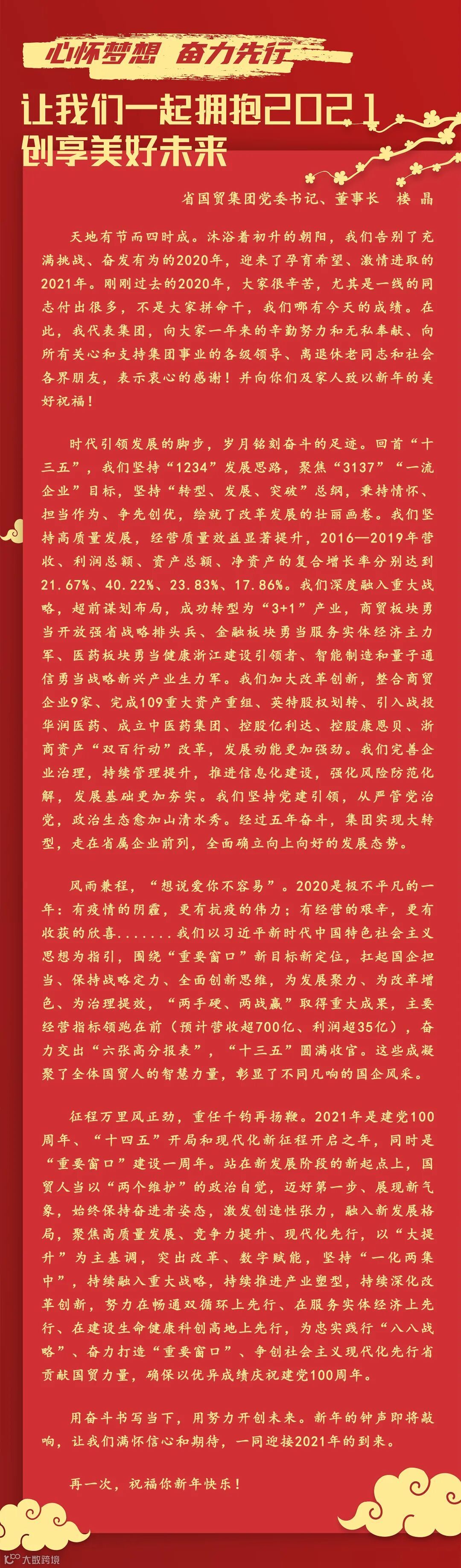 心怀梦想 奋力先行 让我们一起拥抱2021 创享美好未来——2021年新年贺词
