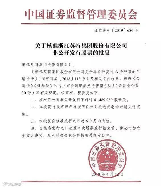 2019年4月12日 证监会批复通过 |