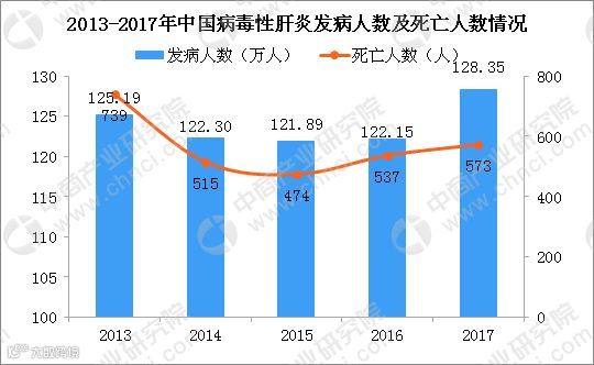 一直以来,我国都是肝病发病率最高的国家之一。2013年至2017年,每年有超过120万人出现病毒性肝炎发病,每年有450-750人死于病毒性肝炎;2016年,2017年病毒性肝炎发病人数和死亡人数相比2014年和2015年均出现上升。